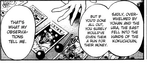 In Volume 37, Kagami noticed that Yohan Kokuchouin, Kazuki Fuuchouin, and Juubei Kakei had fallen in battle. Kagami was quite surprised to see that Yohan had fallen and figured that even the Archive could not have foreseen such an event. Himiko commented that something had ended, and something else had begun. Kagami then revealed that "Time" had...