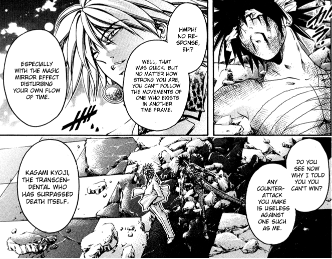Later, during his fight with Ban Mido, Kagami explains that he inhabit a different frame of time than Ban Mido.